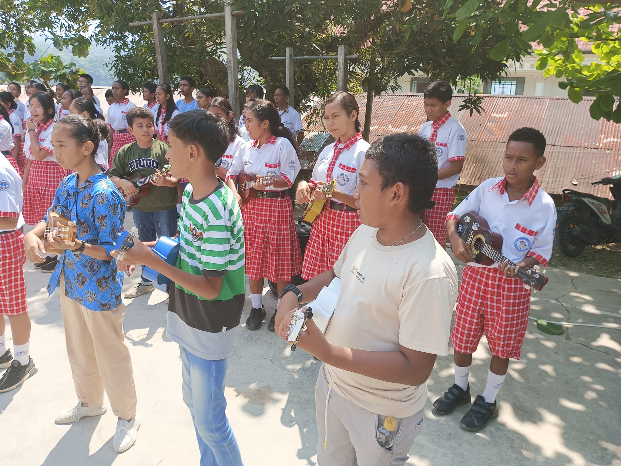 Salah satu kegiatan Ekstra Kurikuler di SMP YPPK Donbosco saat ini adalah grup ukulele yang sudah berjalan selama 6 bulan terakhir, dengan guru pembimbing Cornelis Wagab.